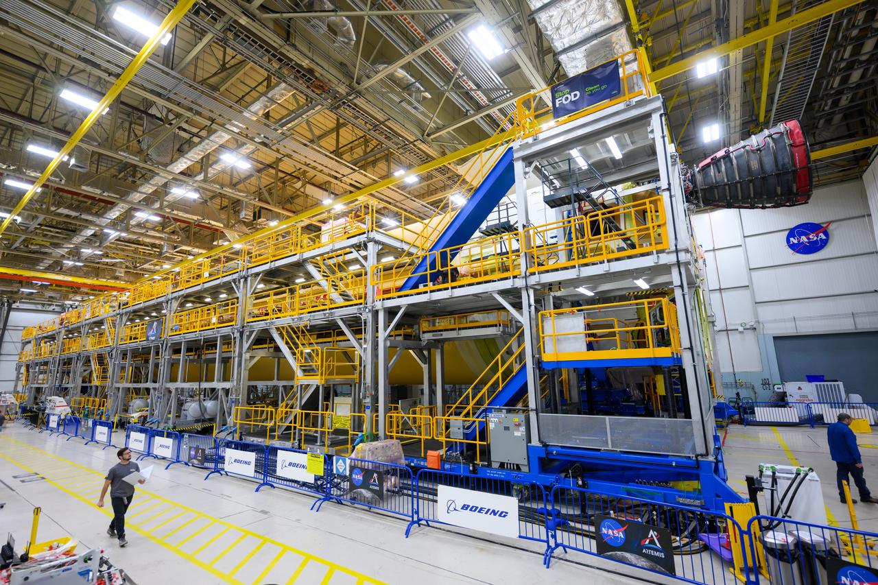 Crews at NASA’s Michoud Assembly Facility in New Orleans load alluminum alloy panels into the Vertical Weld Center June 1. The Vertical Weld Center is a friction-stir weld tool for the large structures of the core stage for the SLS (Space Launch System) rocket. Teams load the panels into the VWC using an overhead crane system, then multiple panels are welded together to create entire barrels. The panels in these images are some of the five barrels that will form the SLS liquid hydrogen propellant tank for the SLS rocket that will power NASA’s Artemis IV mission, which is also the first flight of SLS in its more powerful Block 1B configuration. The SLS core stage is made up of five unique elements: the forward skirt, liquid oxygen tank, intertank, liquid hydrogen tank, and the engine section. The liquid hydrogen propellant tank holds 537,000 gallons of liquid hydrogen cooled to minus 432 degrees Fahrenheit and sits between the core stage’s intertank and engine section. The liquid hydrogen hardware, along with the liquid oxygen tank, provides propellant to the four RS-25 engines at the bottom of the core stage to produce more than two million pounds of thrust to help launch the Artemis IV mission to the Moon. Together with its four RS-25 engines, the rocket’s massive 212-foot-tall core stage — the largest stage NASA has ever built — and its twin solid rocket boosters produce 8.8 million pounds of thrust to send NASA’s Orion spacecraft, astronauts and supplies beyond Earth’s orbit to the Moon. NASA is working to land the first woman and first person of color on the Moon under Artemis. SLS is part of NASA’s backbone for deep space exploration, along with Orion and the Gateway in orbit around the Moon. SLS is the only rocket that can send Orion, astronauts, and supplies to the Moon in a single mission.