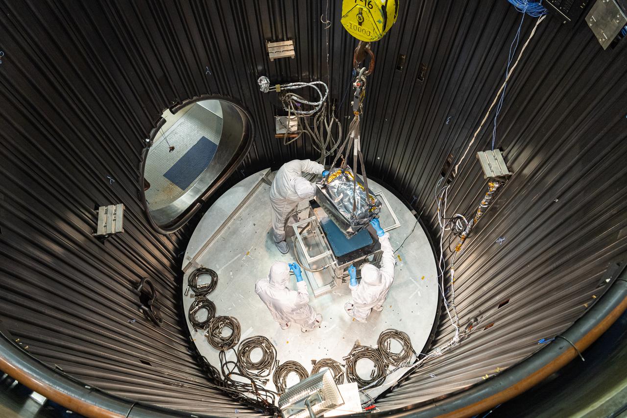 A view of the OSAM-1 spacecraft bus inside the thermal vacuum chamber at Goddard Space Flight Center, Greenbelt Md., Dec 1, 2023. This photo has been reviewed by Maxar, OSAM1 project management, and the Export Control Office and is released for public view. NASA/Mike Guinto