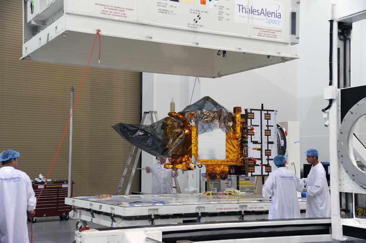 Sentinel-6 Michael Freilich team members from European Space Agency pose with the spacecraft during processing. Launch is scheduled for Nov. 10, 2020 from Vandenberg Air Force Base in California. NASA’s Launch Services Program based at Kennedy Space Center is responsible for launch management.
