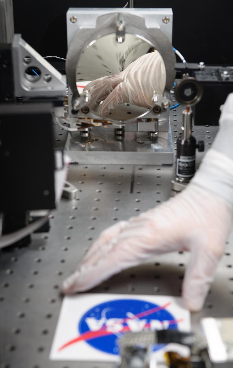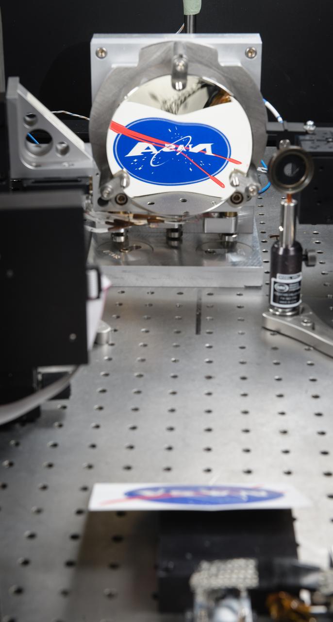 Next Generation PIAA mirrors were made by Tinsley and are inside the enclosure. Shows dummy set-up uning early PIAA mirors made by Axsys on loan to Ames from JPL.